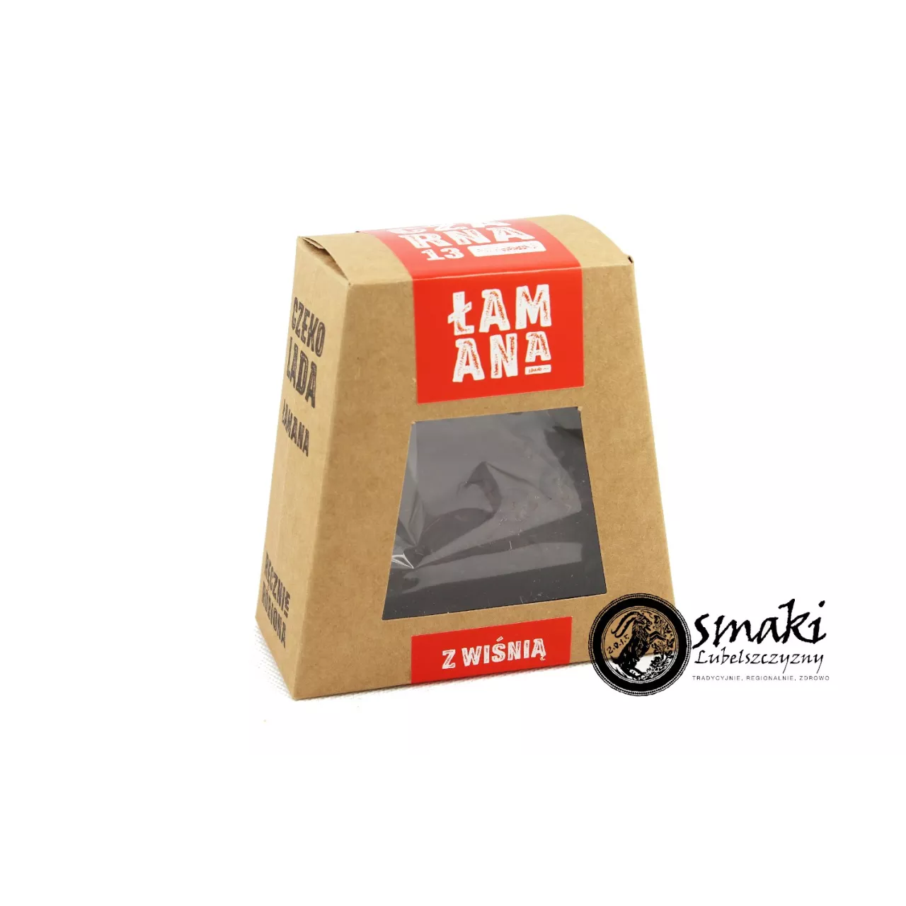 W tej zgrabnej tabliczce spotyka się cukiernicza pasja, zaangażowanie w rzemiosło i idealnie dobrane składniki. Chcesz dołączyć do tego spotkania? Spróbuj połączenia deserowej czekolady z wiśnią - na pewno namaluje uśmiech na twarzy Twojej lub obdarowanej osoby.